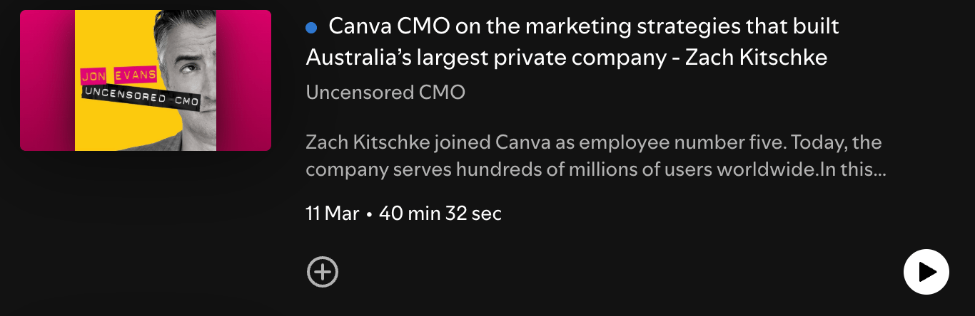 Zach Kitschke, CMO of Canva, joins host Jon Evans to walk through the brand and growth decisions that took Canva from a five-person startup to a global platform with 200 million users. The freemium model deep-dive alone is worth the listen, and Kitschke is refreshingly direct on what actually drove growth versus what made a good story at the time - listen here.